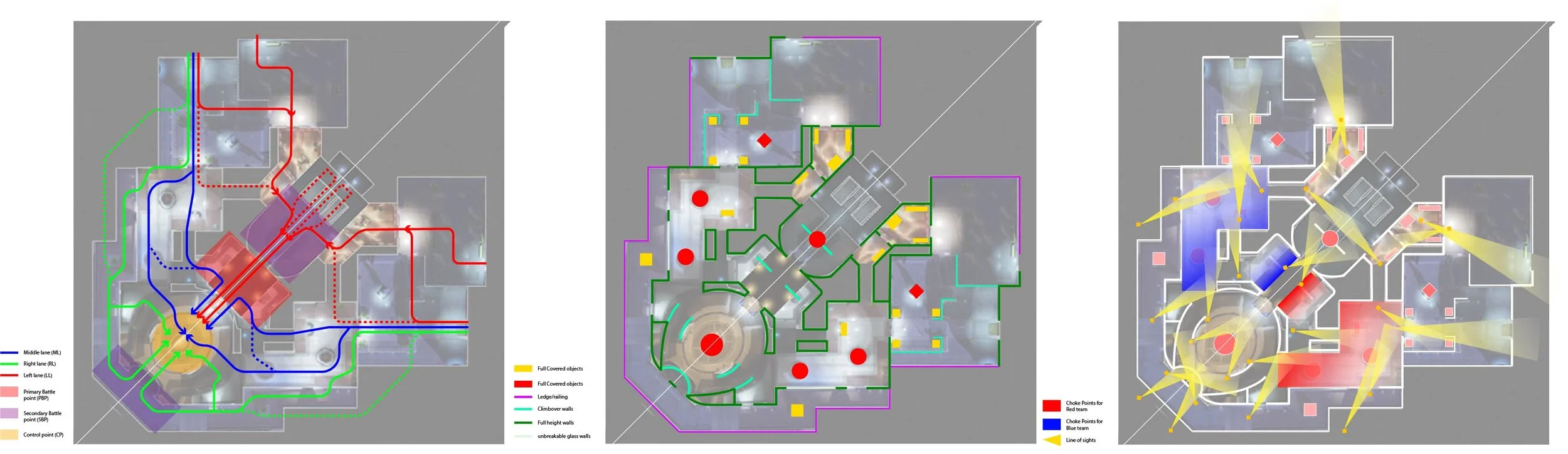 For choke points, I decided to add line of sights as one of the elements because of most of the time. Because if you are winning, you often want to control an area in order to keep enemies away from the CP. For that reason, People often spawn camp and taken a major room/area to make sure the enemy team to go through this particular room. I do think this map, Control Center, has only one or two areas where it is worth taking over because the areas are more wide open and have a bottleneck corridor before entering the CP.